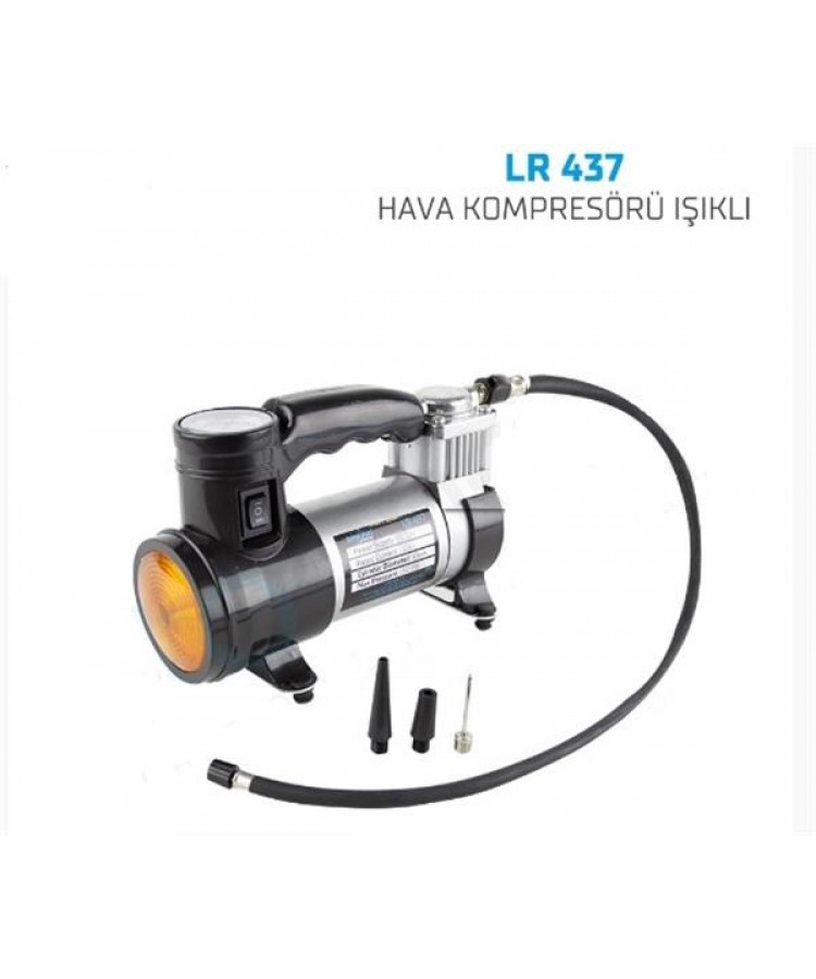 HAVA KOMPRESÖRÜ 12V METAL GÖVDE IŞIKLI Sİ̇YAH KOD:LR437