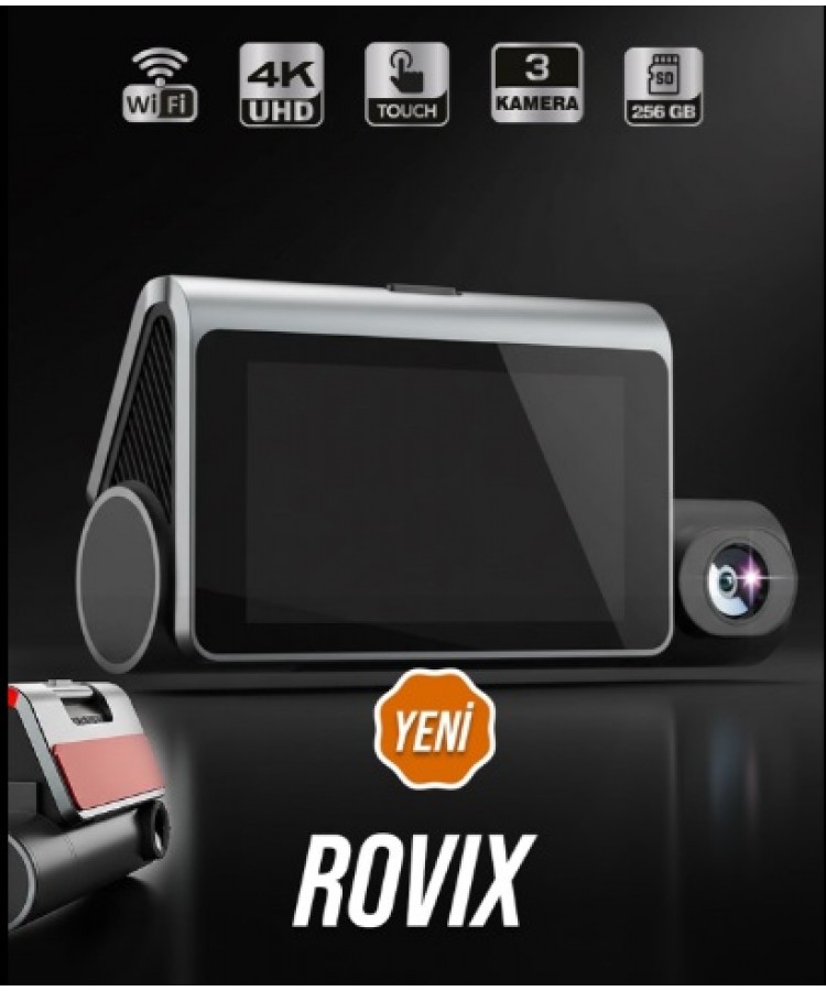 ROVIX 3 KAMERALI 4K UHD DOKUNMATİK EKRANLI Wi-Fi & GPS ARAÇ KAMERASI - ADAS BSD DESTEKLİ 256 GB MİCRO SD DESTEĞİ KOD: ROVIX