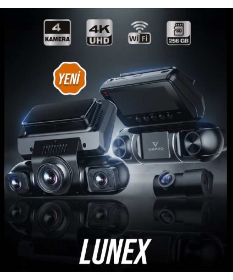 LUNEX 4 KAMERALI 4K UHD Wi-Fi & GPS AKILLI ARAÇ KAMERASI 256 GB MicroSD DESTEĞİ - 24 SAAT PARK İZLEME KOD:LUNEX