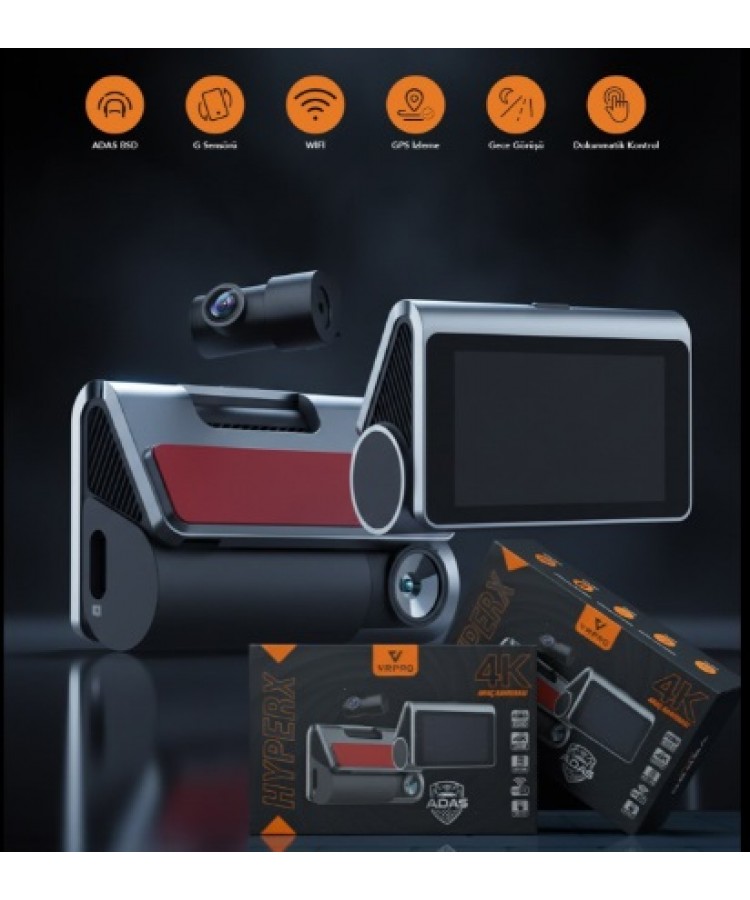HYPERX 4K UHD DOKUNMATİK EKRANLI Wi-Fi & GPS ARAÇ KAMERASI - 256 GB DESTEKLEYEN ADAS DESTEKLİ KOD:HYPERX